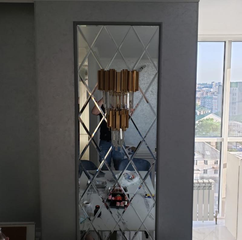 Использована зеркальная плитка "вытянутый ромб" с фацетом.